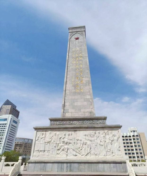 在天山脚下的乌鲁木齐市人民广场中央,一座庄严巍峨的纪念碑直插云霄,这便是中国人民解放军进军新疆纪念碑。纪念碑坐北朝南,由碑体、基座和平台三部分构成,碑高32.6米,四周粘贴厚12厘米的花岗岩。碑座四面,每面近30平方米;平台两层共八个台阶,均采用产自新疆的红色花岗岩铺制,并设有汉白玉护栏。纪念碑北面镌刻着王震的题词——“中国人民解放军进军新疆纪念”;南面则是王恩茂的题词——“人民解放军进军新疆,开创了新疆各族人民解放的新的历史时期”。碑座浮雕刻画了解放新疆、屯垦戍边、各民族大团结的壮观画面。底座上分别用汉文、维吾尔文镌刻碑文,全文如下: 一九四九年,全国人民解放战争取得了决定性胜利,西北人民解放战争进入到最后胜利的阶段,兰州解放,接着一野一兵团解放了西宁,为解放新疆、解放全西北,在中共中央、中央军委,毛泽东主席、朱德总司令统一战略部署下,在解放军副总司令兼一野司令、政委彭德怀指挥下,在一野一兵团司令兼政委王震率领下,开始了进军新疆的行动。二军发扬长征精神,翻越祁连雪山,直插张掖,挺进酒泉;二、六两军准备入疆,新疆解放指日可待。陶峙岳、包尔汉分别于九月二十五、二十六日通电起义。为巩固新疆和平解放的胜利,一兵团加快了进疆的步伐。一九四九年十月,进疆大军西出玉门关,穿越星星峡,从空中到陆地,向新疆展开了气势磅礴的大进军。至十二月初,一兵团领导机关和二、六两军主力先后抵达迪化、喀什、伊犁,与“三区”民族军和新疆起义部队会师,把五星红旗插到天山南北和帕米尔高原,结束了国民党在新疆的反动统治,解放了新疆各族人民,开创了新疆历史的新纪元。 人民解放军进疆部队全体官兵为解放新疆、建设新疆、保卫新疆所创建的丰功伟绩光照千秋,新疆各族人民永志不忘! 为解放新疆而牺牲的革命烈士永垂不朽! 中共新疆维吾尔自治区委员会 新疆维吾尔自治区人民政府 一九九五年九月三十日 碑文仅400余字,不仅铭记了新疆和平解放、起义会师、巩固边防等重大事件,生动再现了中国人民解放军进军新疆的光辉历史,深情缅怀了为解放新疆献出生命的革命先烈,更展现了人民军队解放新疆的艰难历程及其重大而深远的历史意义,读来令人心潮澎湃、深受教育。 1949年秋,兰州、青海、宁夏相继解放。党中央高度重视新疆时局,在积极进行军事准备的同时,致力于和平解放新疆。中共中央派联络员邓力群从莫斯科出发,于8月14日抵达新疆“三区”革命的中心伊宁,开设电台,使党中央能够随时掌握新疆情况,为和平解放新疆提供了重要决策依据。 与此同时,中国人民解放军西北野战军第一兵团司令员兼政治委员王震奉命率第二军和第六军向西进发。9月14日,王震率第二军由西宁出发,挥师北上,越过祁连山脉,进入河西走廊。第二军第五师克服高山缺氧和暴风肆虐等极端困难,以惊人毅力翻越了终年积雪、海拔4000多米的祁连山。 第一野战军沿河西走廊一路所向披靡。在军事威慑与中共和平政策的感召下,陶峙岳、包尔汉分别于9月25日、26日通电,宣布起义:自即日起,与广州政府断绝关系,竭诚接受毛主席之八项和平声明与国内和平协定。全军驻守原防,维持地方秩序,听候人民革命军事委员会及人民解放军总部之命令。 起义通电一经公布,百姓欢呼雀跃,自发庆祝这一历史时刻。9月28日,毛泽东给陶峙岳、包尔汉及新疆军政起义人员发来电报,对他们和平起义表示嘉勉。与此同时,毛泽东命令人民解放军第一野战军第一兵团向新疆进军。 为使新疆各族人民早日获得全面解放,并应对国民党残余势力可能发动的武装叛乱,党中央命令人民解放军第二、第六两军火速进疆,在冬季到达各自的指定位置。1949年10月10日,十万大军在王震率领下,西出玉门关,北穿星星峡,向新疆展开了气势磅礴的大进军。从酒泉至喀什约2500公里,至阿山(今阿勒泰地区)约2100公里,至伊犁约1900公里,沿途多为“天上无飞鸟,地上不长草”的戈壁瀚海与雪山峻岭。人民解放军官兵克服严寒天气与遥远路途,艰难西进。 部队以第二军为左路军向南疆开进,第六军为右路军向北疆开进。第六军于11月4日从酒泉出发,依托飞机与汽车运载,分批空运、车运至迪化(今乌鲁木齐)、哈密、伊宁等地。其骡马大队500多名战士,驭使2000多头牲畜,行军68天,行程1500多公里,于12月底全部到达迪化、绥来(今玛纳斯)、古牧地等地。至1950年1月,除第十六师一部外,各部均抵达指定位置完成布防。至此,第六军胜利完成进军任务。 1949年11月26日,第二军四师经哈密、焉耆抵达南疆重镇喀什。随后,军长郭鹏、政治委员王恩茂率军指挥机关于12月1日抵达喀什。第二军教导团、炮兵团等部在吐鲁番、鄯善过冬后,于1950年3月下旬至4月中旬徒步1650公里,陆续抵达喀什。第二军第五师师直机关及十四团于1949年11月29日进驻阿克苏、温宿。 1949年12月5日,为及时制止和田民族分裂分子预谋的暴乱,刚经万里跋涉抵达阿克苏的解放军第一兵团二军五师十五团接到紧急命令:“火速进军和田,赶在新年到来之前,解放和田。”为争取时间,第十五团主力1800余名官兵在代政委黄诚率领下,选择了最近却最艰险的路线——徒步横穿“死亡之海”塔克拉玛干沙漠。 塔克拉玛干,维吾尔语意为“进去出不来”,东西长约1000公里,南北宽约400公里,环